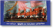 The BABES IN TOYLAND Series of Disneykins was introduced in 1961 with the release of Walt Disney's live action film BABES IN TOYLAND, starring Annette, Tommy Sands, Ray Bolger and Ed Wynn. Although this Disneykin series featured only eight slightly different soldier figures, it holds interest today with the strange scene boxes, flats, and packaging formats. To make matters more confusing, the soldiers were marketed in two sizes; Disneykin-miniature and larger 60mm size each with similar packaging. For more information see the listing in the Disneykins Database.