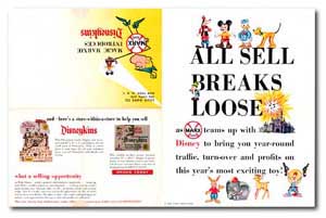 The inside of the original 1961 Disneykins Sales Brochure/Mailer, sent to toy buyers and toy store owners. |